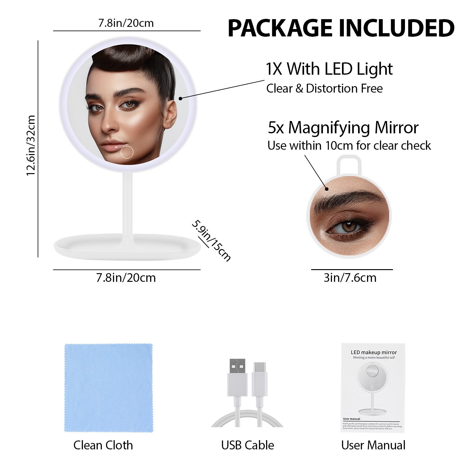 【What You Get & GUARANTEED】- Including: 1*Vanity Makeup Mirror 1*USB Micro Cable(Note: The acceptable power adapter is 5V,1A-2A.)1*User Manual 1*cleaning cloth. FCC, CE, ROHS approval. 12 months warranty and 24-hour friendly customer service.