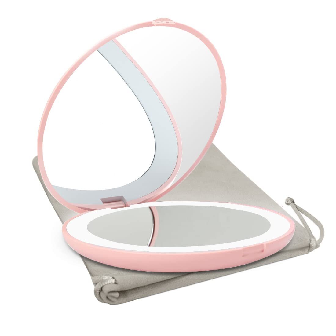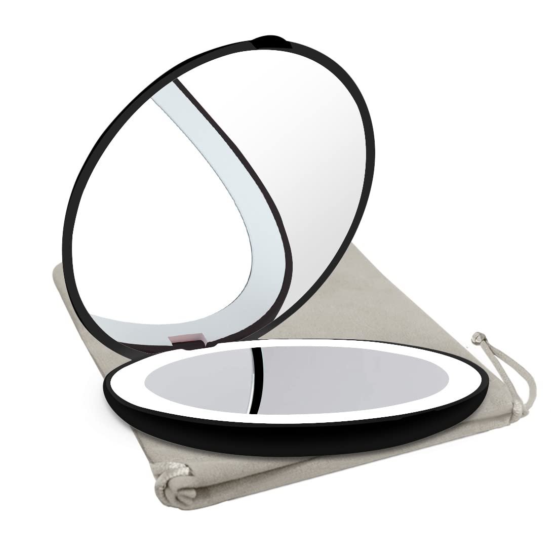 Milishow Compact Mirror with LED Light (Black+Pink)