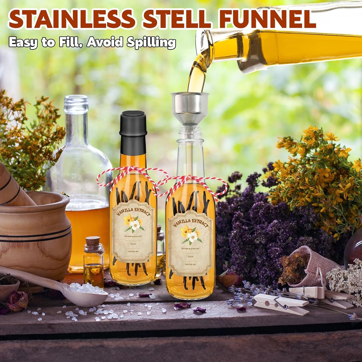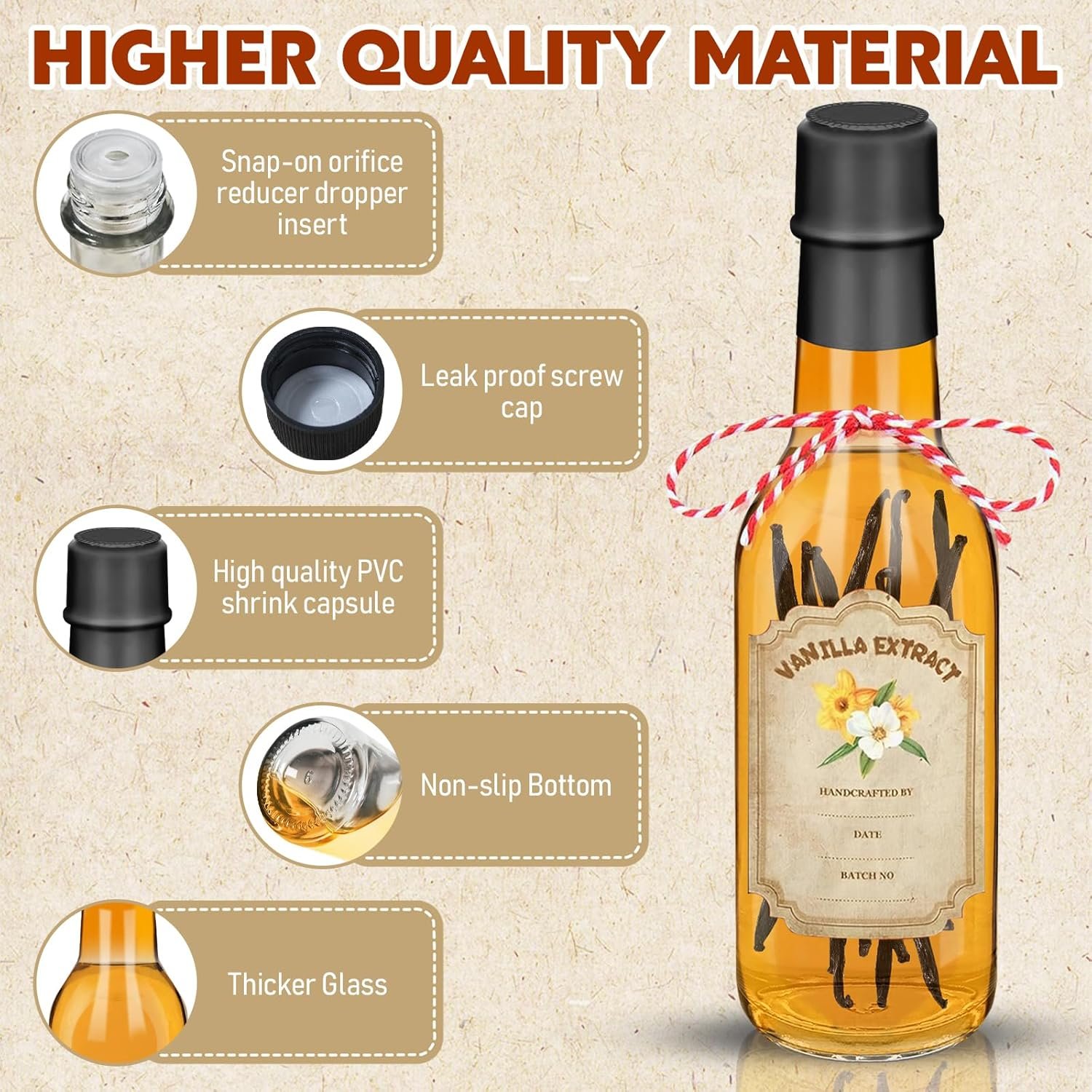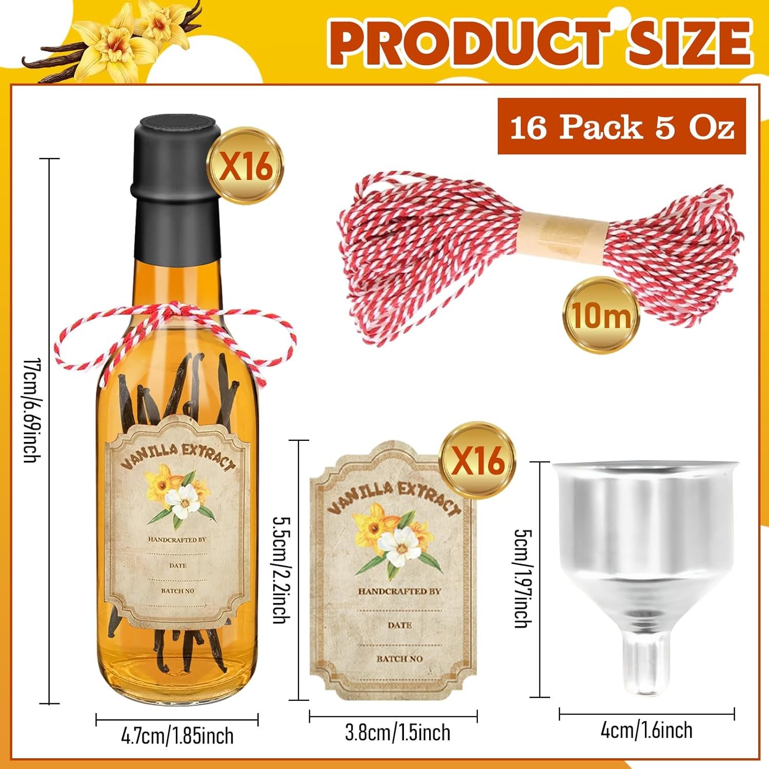 16 Pack Glass Vanilla Extract Bottles 5 oz with Lids, Vanilla Extract Labels, Shrink Band and Funnel, Glass Jar Vanilla Bottles for Syrup, Jars for Vanilla Extract, Glass Bottles for Vanilla Extract