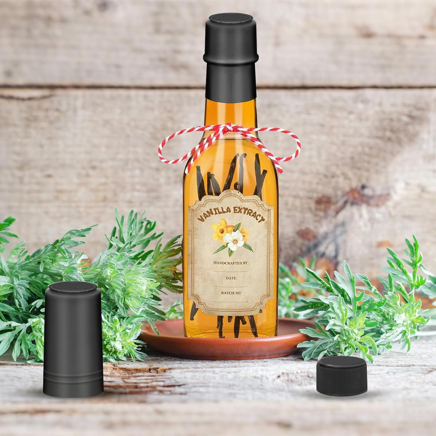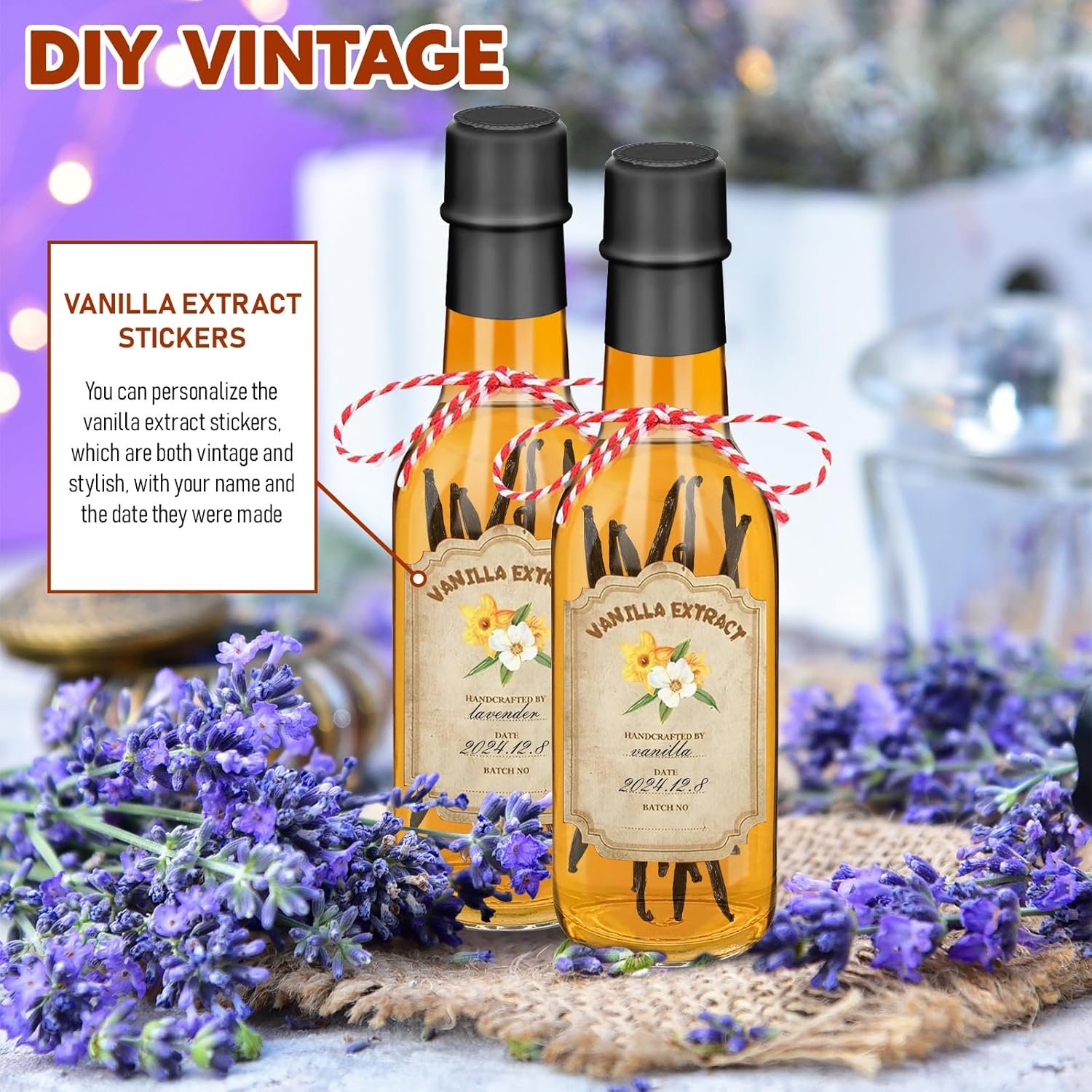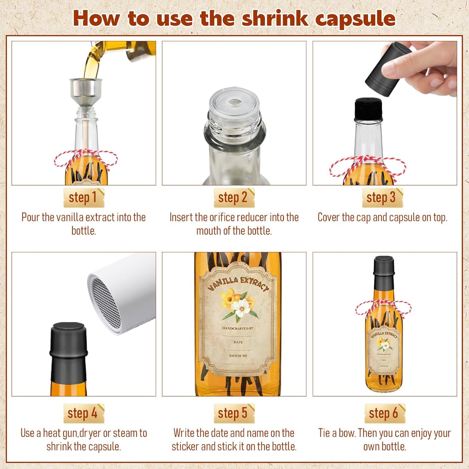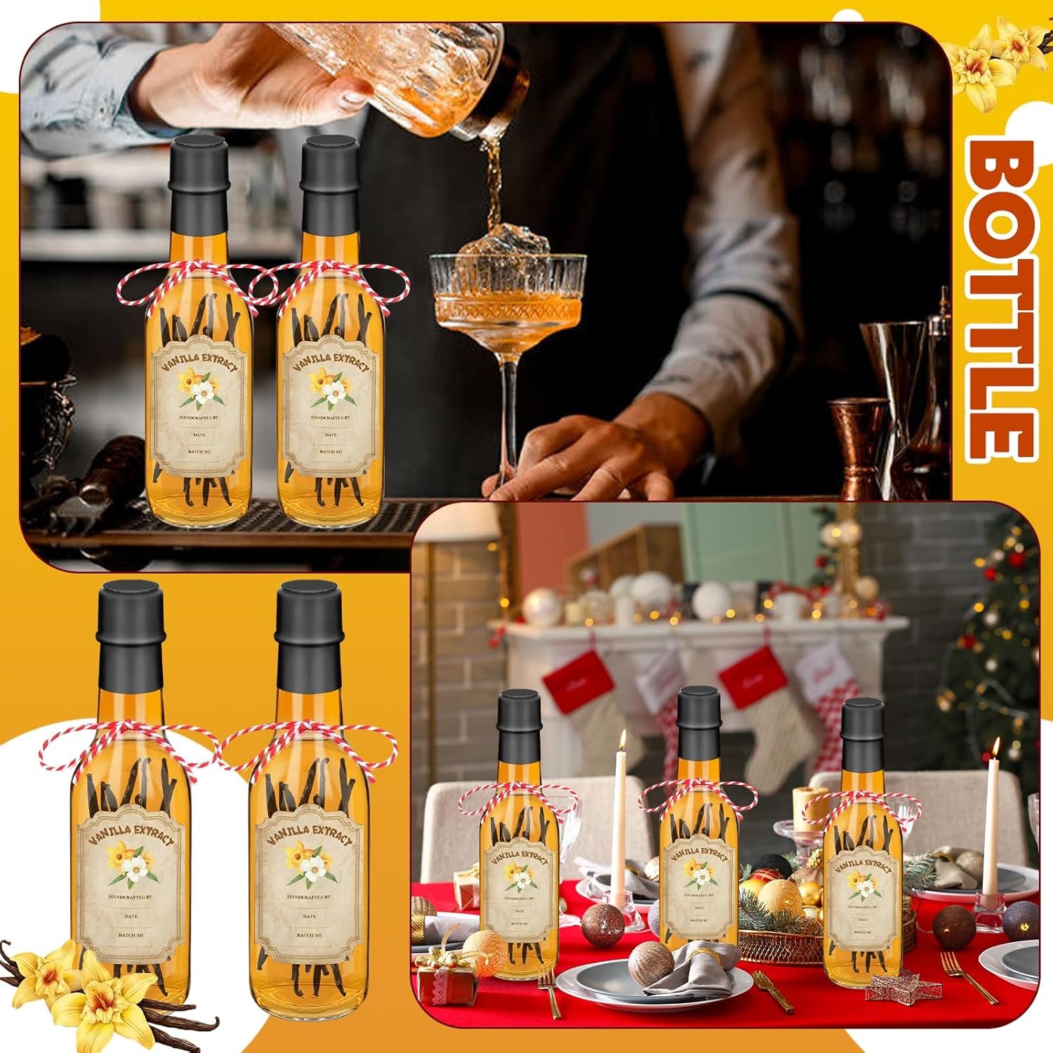 16 Pack Glass Vanilla Extract Bottles 5 oz with Lids, Vanilla Extract Labels, Shrink Band and Funnel, Glass Jar Vanilla Bottles for Syrup, Jars for Vanilla Extract, Glass Bottles for Vanilla Extract