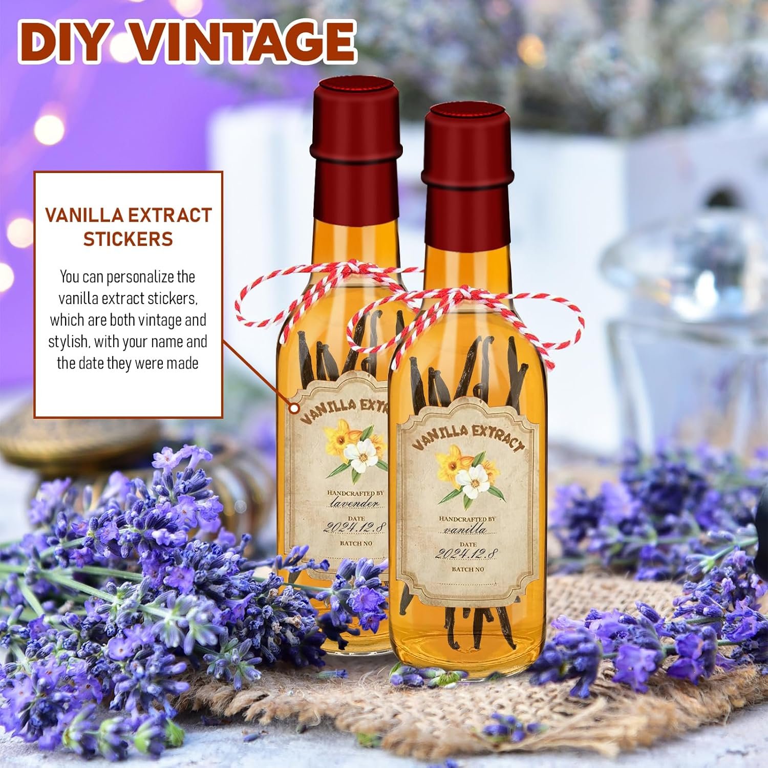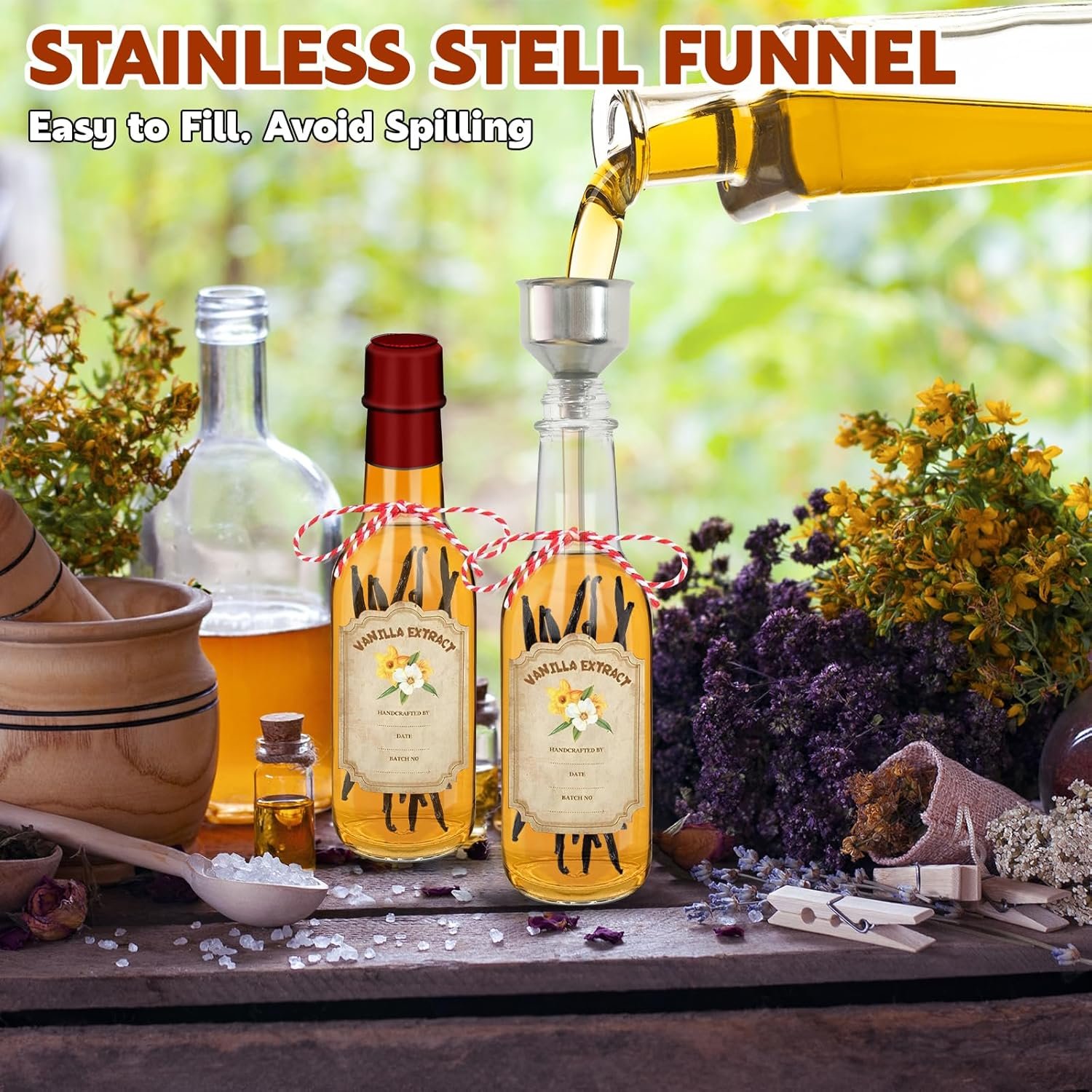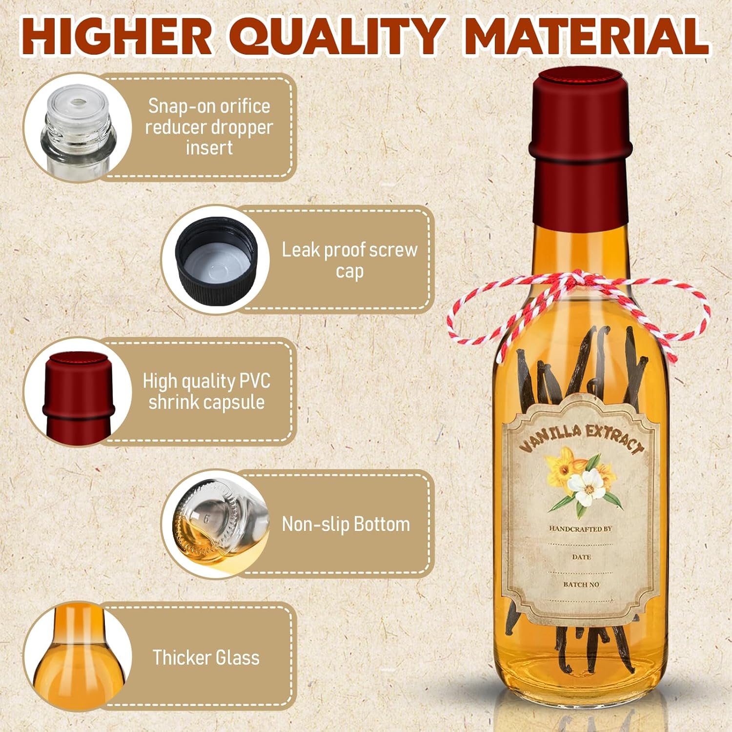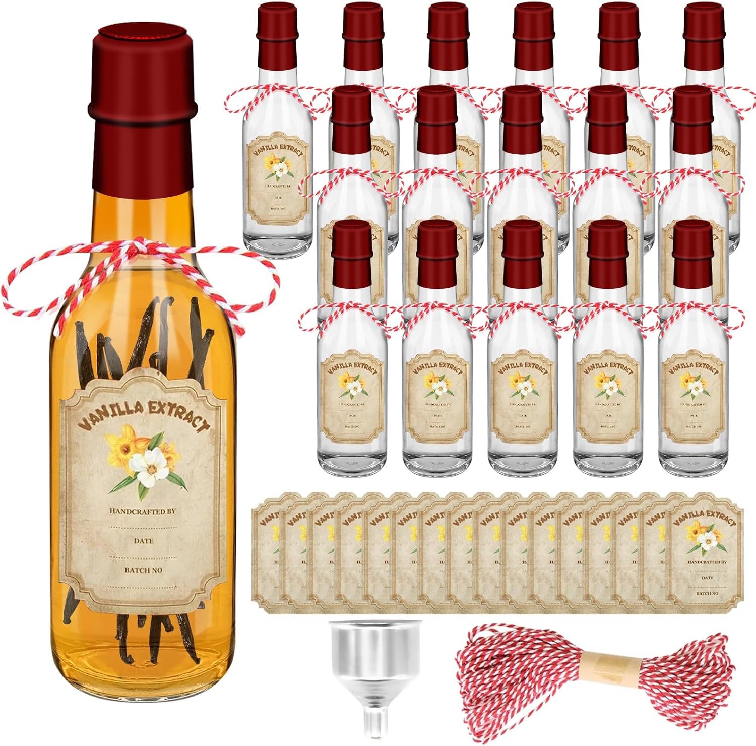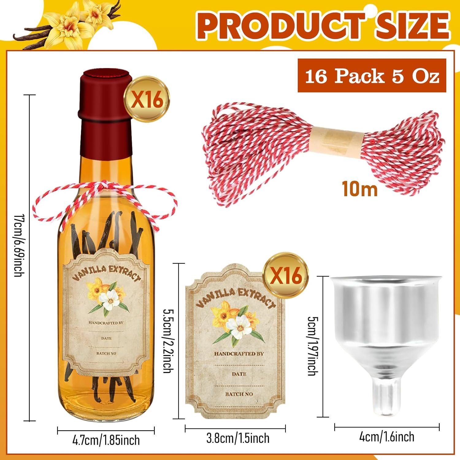 16 Pack Glass Vanilla Extract Bottles 5 oz with Lids, Vanilla Extract Labels, Shrink Band and Funnel, Glass Jar Vanilla Bottles for Syrup, Jars for Vanilla Extract