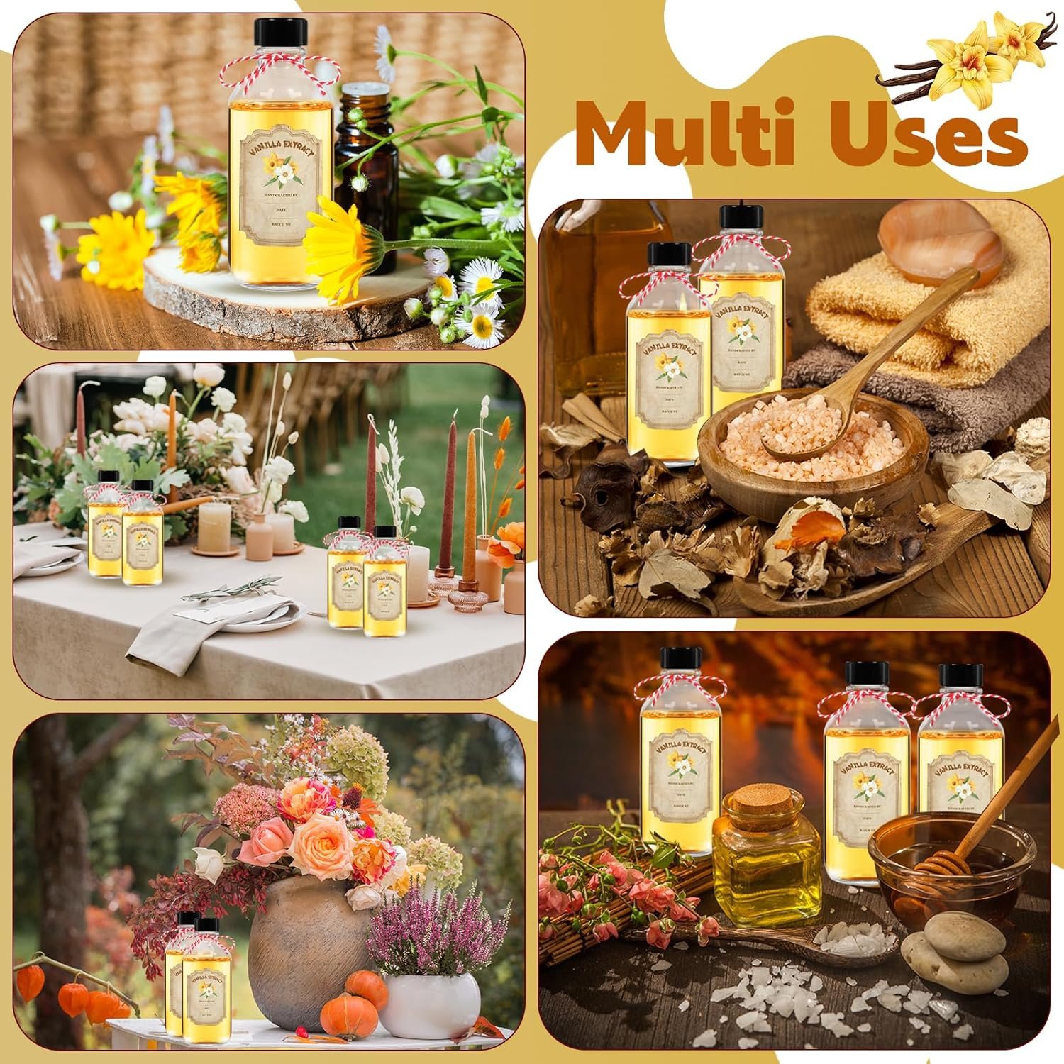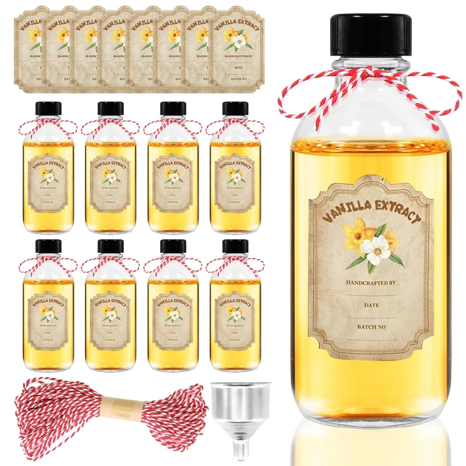 8 Pack Glass Vanilla Extract Bottles 8 oz with Lids, 8 PCS Vanilla Extract Labels and Funnel, Glass Boston Vanilla Bottles for Syrup Gift, Jars for Vanilla Extract, Glass Bottles for Vanilla Extract