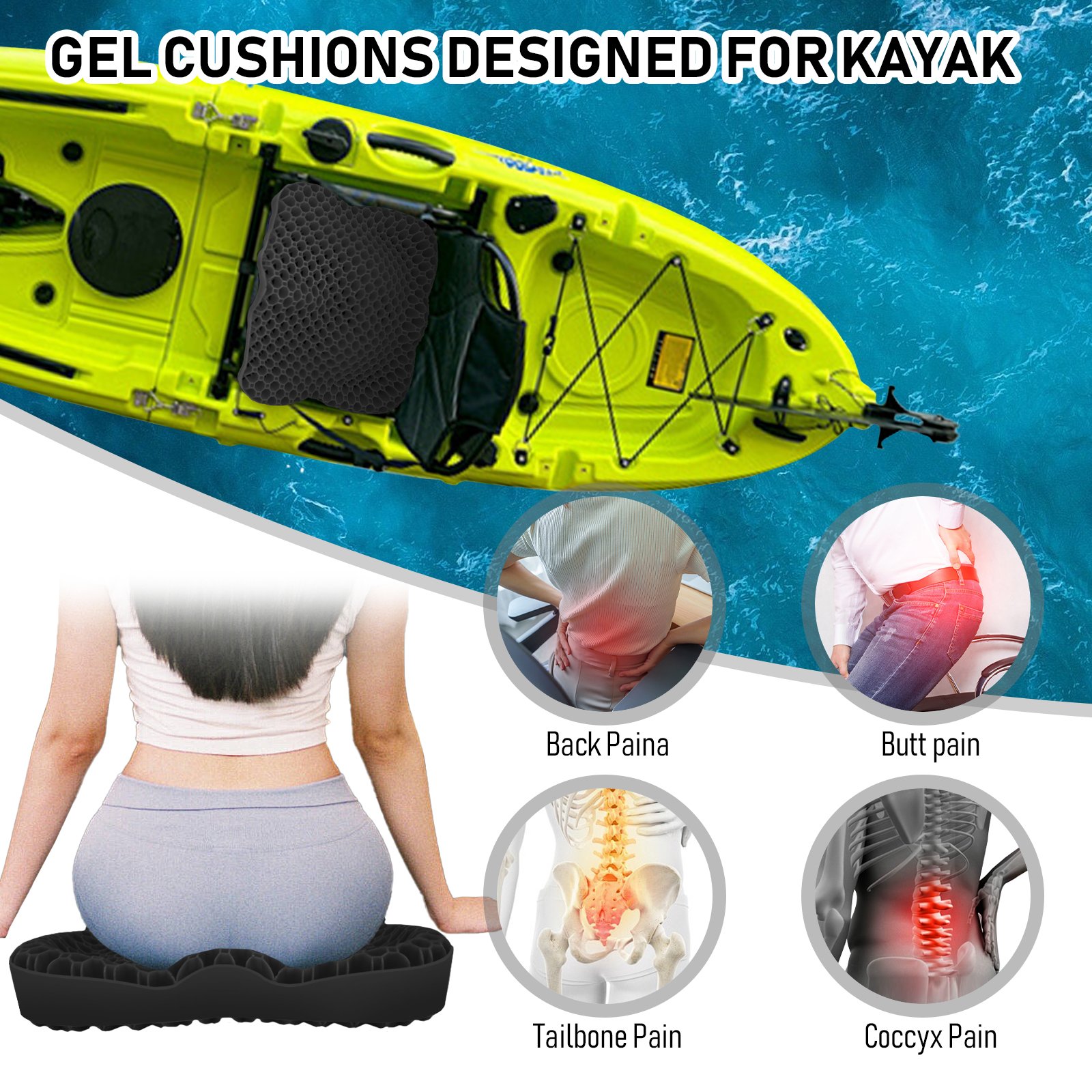 NEW-Vi Anti-Slip Kayak Seat Cushion – Double Thicken Gel Boat Cushion, Waterproof Kayak Gel Seat Cushion, Coccyx Sciatica Pain Relief, Kayak Accessories for Fishing, Kayak Fishing Accessories
